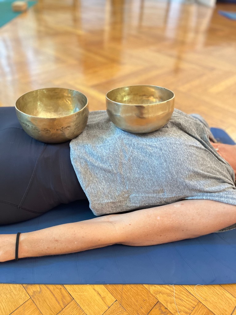 Durant le massage sonore on place les bols directement sur le corps de la personne ou proche d’elle. Notre corps réagit aux fréquences vibratoires des sons tout comme notre mental.